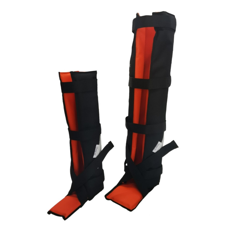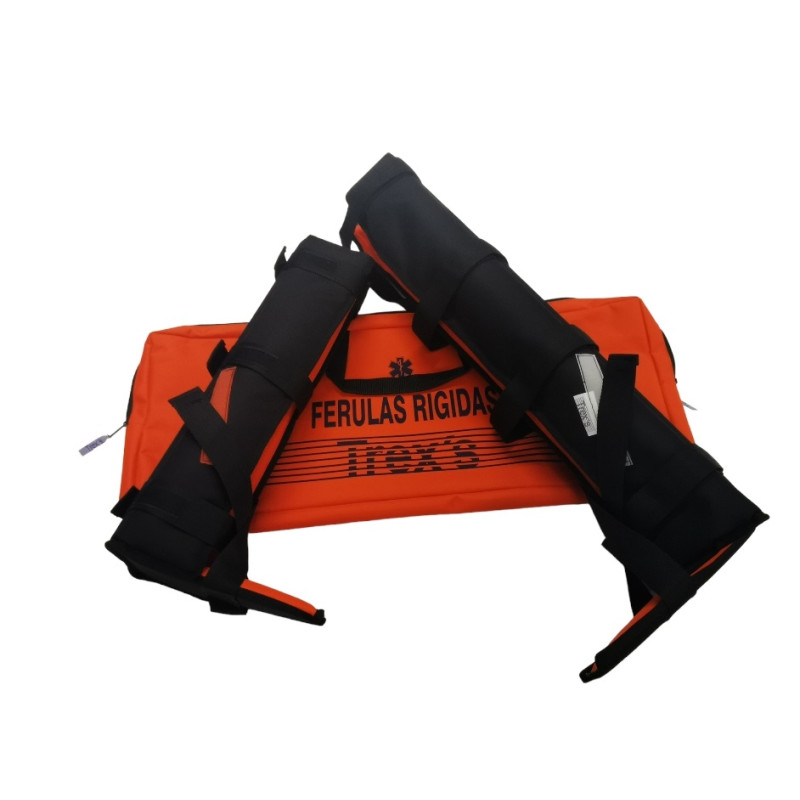 Juego compuesto por dos férulas de distinto tamaño para la inmovilización de miembros inferiores tanto adulto como infantil. Aunque su cara exterior es totalmente rígida, su cara interna es acolchada para mayor comodidad. Se ajustan al miembro mediante bandas autoadherentes de colores tipo velcro para más facilidad.